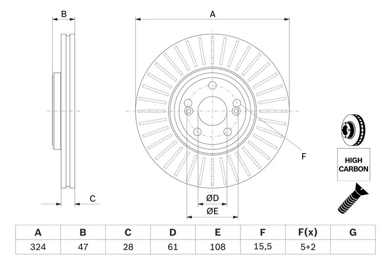 Disc dimensions (diameter, thickness, height, center bore)