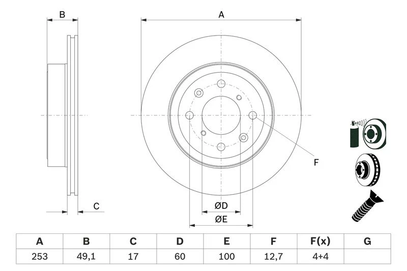 Disc dimensions (diameter, thickness, height, center bore)