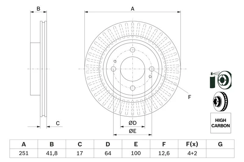 Disc dimensions (diameter, thickness, height, center bore)