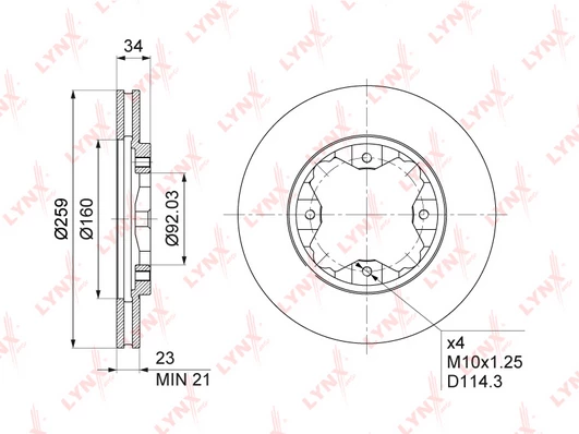 Disc dimensions (diameter, thickness, height, center bore)