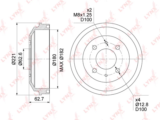 Max. brake drum reboring dimension (mm) 182