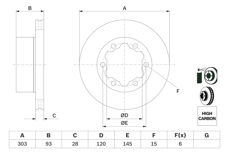 Disc dimensions (diameter, thickness, height, center bore)