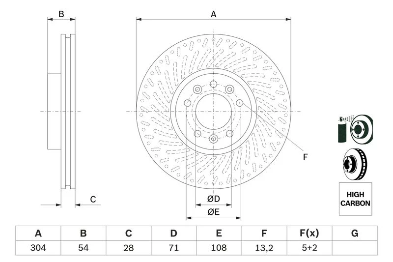 Disc dimensions (diameter, thickness, height, center bore)