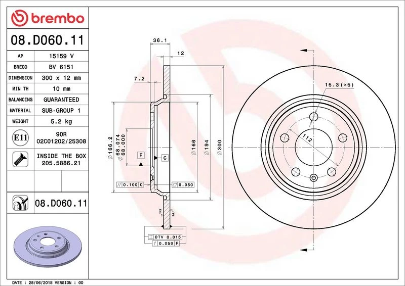 Disc dimensions (diameter, thickness, height, center bore)