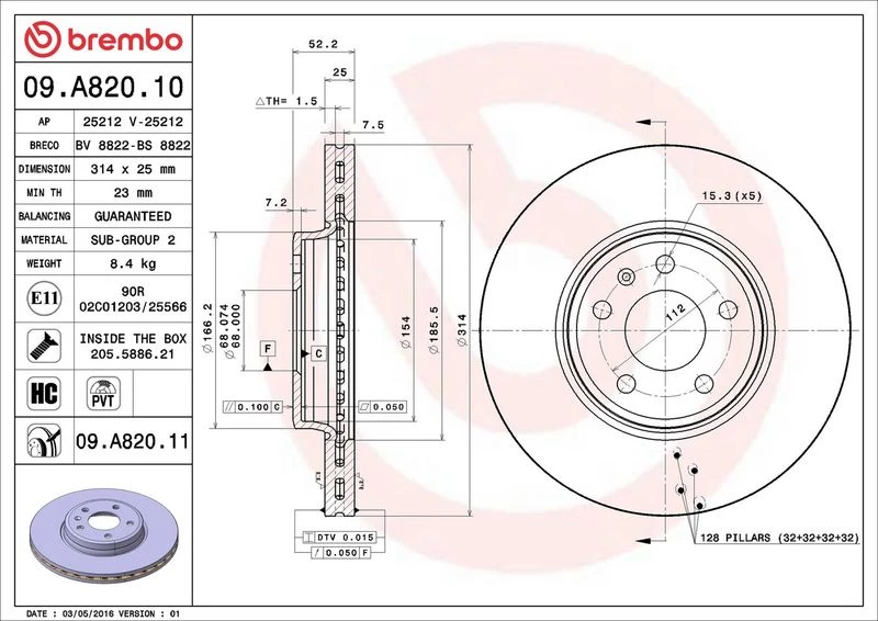 Disc dimensions (diameter, thickness, height, center bore)