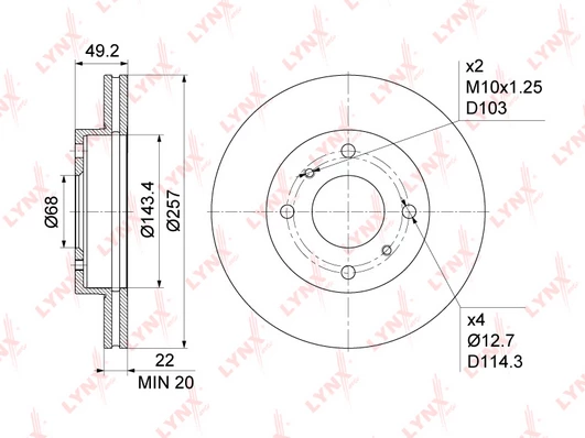 Disc dimensions (diameter, thickness, height, center bore)