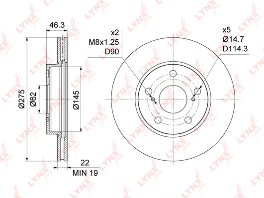 Disc dimensions (diameter, thickness, height, center bore)