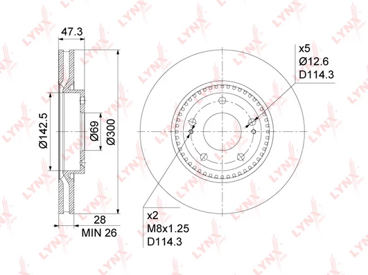 Disc dimensions (diameter, thickness, height, center bore)