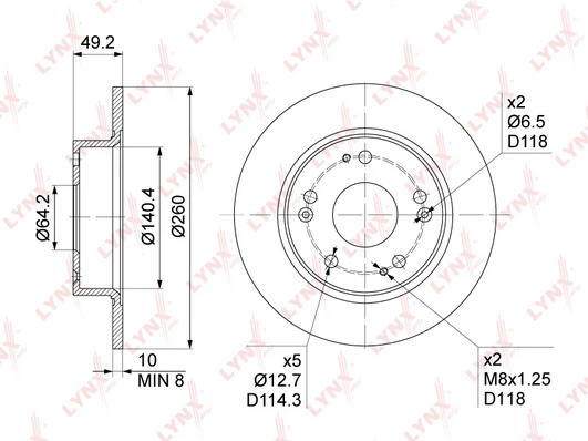 • Disc dimensions (diameter, thickness, height, center bore)